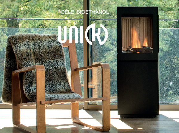 Utilisable sans conduit de fumée, UNI(K)4 est un poêle à éthanol pensé pour une utilisation en intérieur.